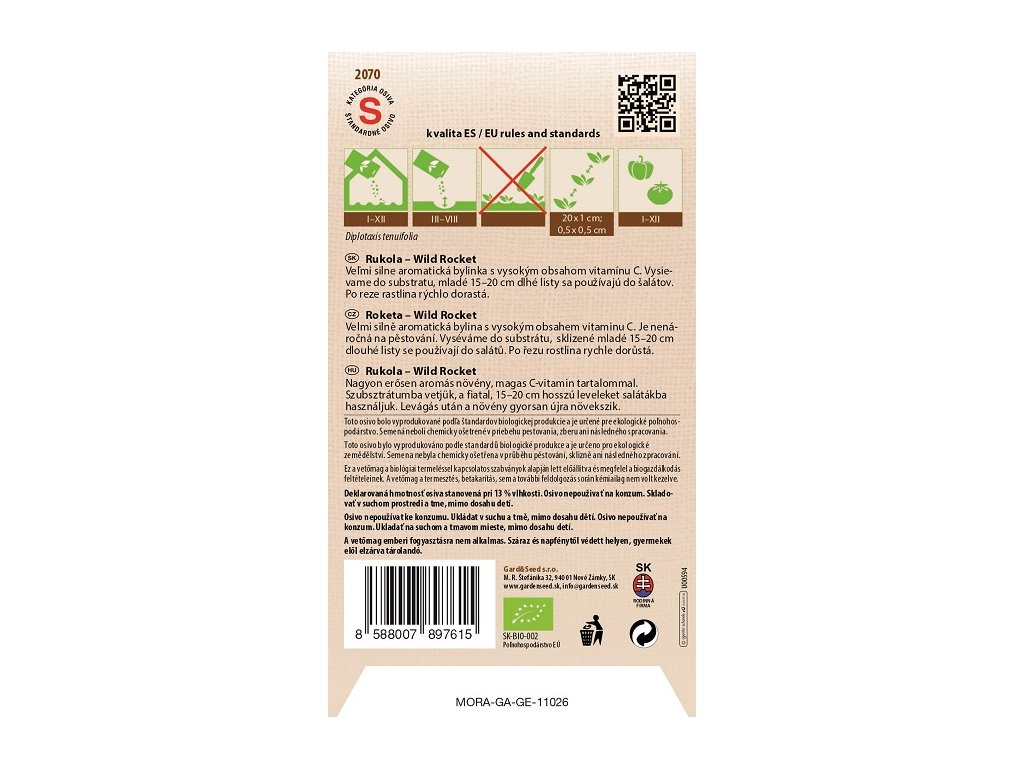 Toto osivo bolo vyprodukované podľa štandardov biologickej produkcie a je určené pre ekologické poľnohospodárstvo. Semená neboli chemicky ošetrené v priebehu pestovania, zberu ani následného spracovania.