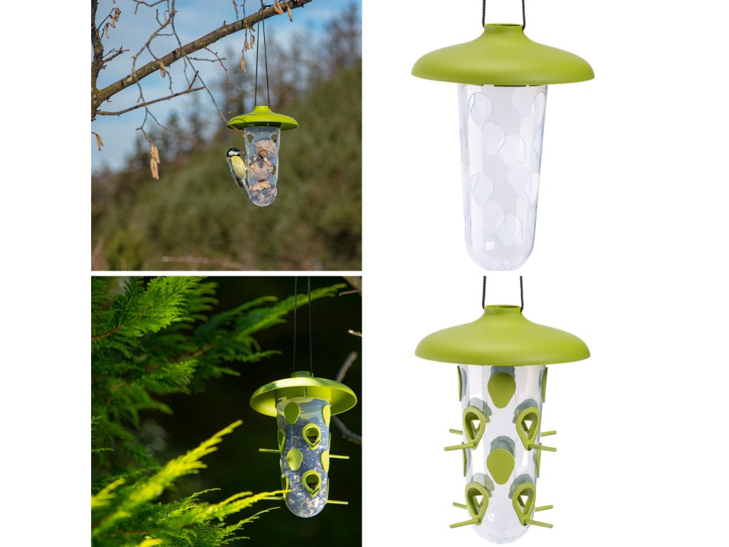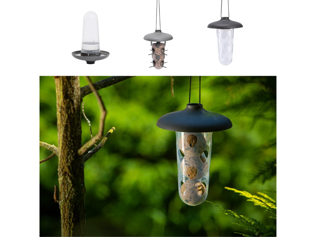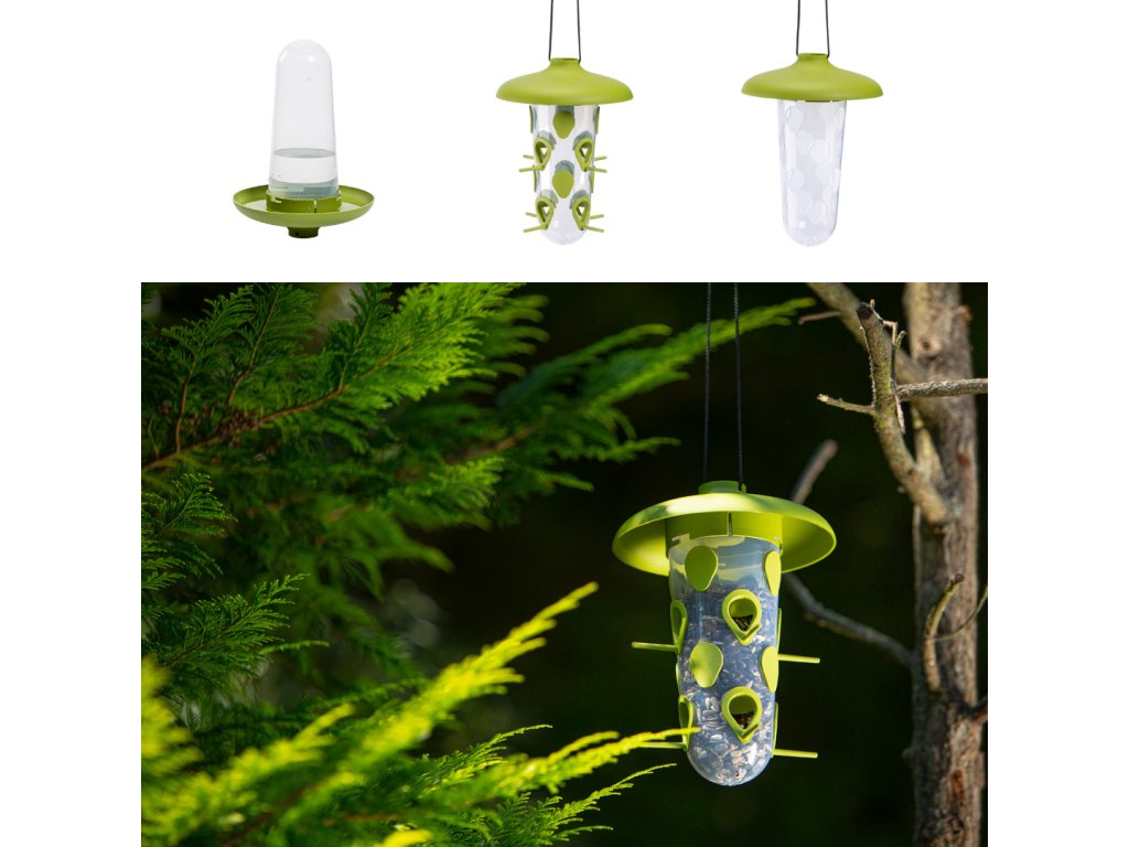 Dva zásobníky určené pre rôzne druhy potravy umožnia naplniť kŕmidlo ako sypkou potravou, tak lojovými guľami a tretí zásobník využijete v teplejšej časti roka ako napájadlo. Zaistenie vody má pre vtáky neoceniteľnú hodnotu. Okrem pitia hrá dôležitú úlohu aj v ich očiste.