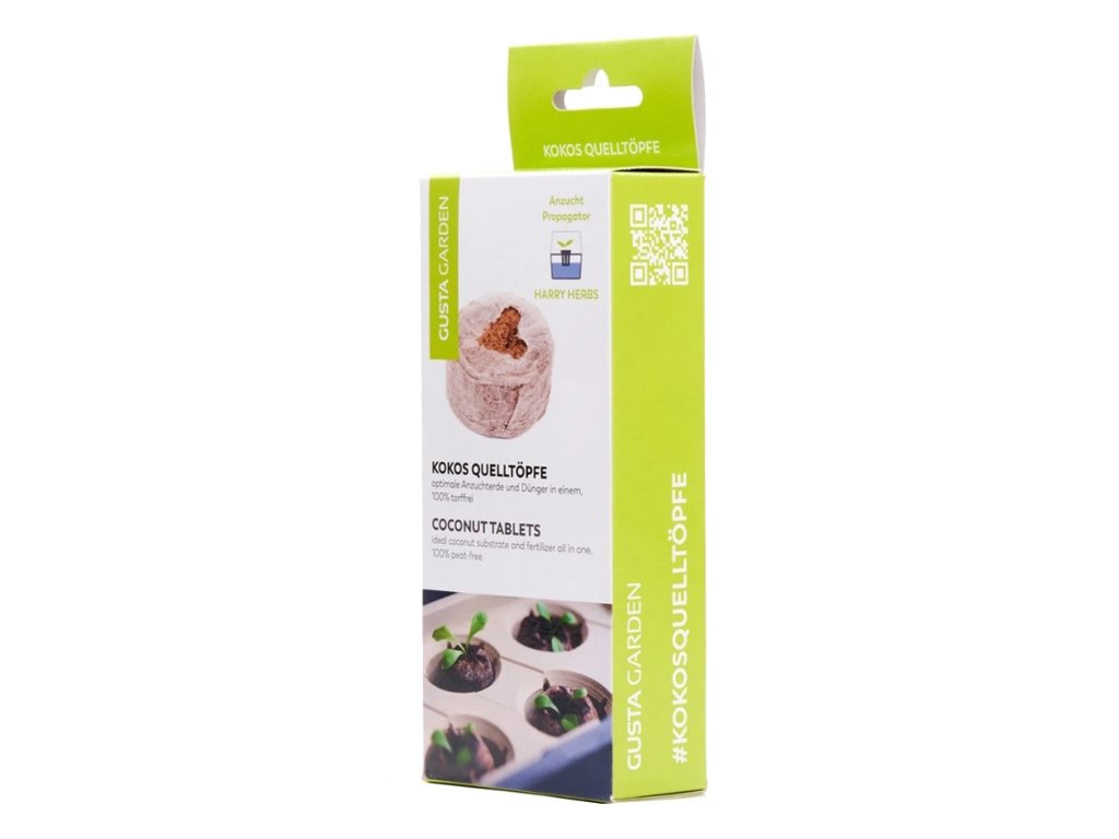 Kokosové tablety sú dehydrované, po pridaní vody však nabobtnajú, čím vytvoria základ pre rast rastlín. Praktická sieťka umožňuje jednoduché presádzanie do väčších kvetináčov bez toho, aby došlo k poškodeniu koreňov. Ideálne na pestovanie v samozavlažovacích kvetináčoch Harry Herbs.
