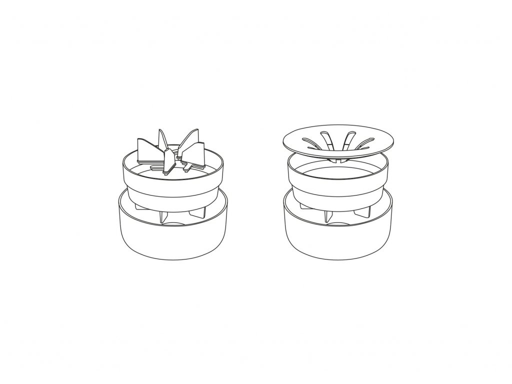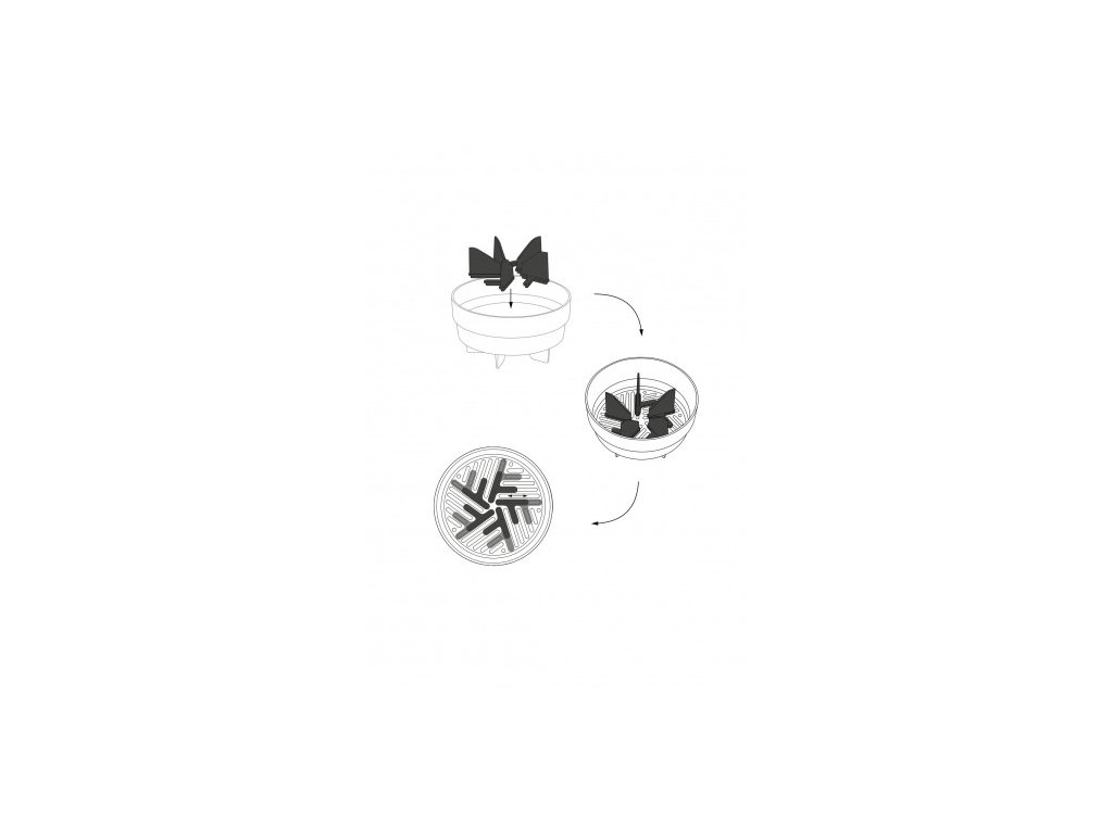 - do hlbokého sitka (C) zacvakneme variabilné rebierka (B) podľa veľkosti zeleniny. Čím ďalej od stredu sitka rebierka umiestňujeme, tým väčší priestor sa vytvára uprostred hlbokého sitka (C),