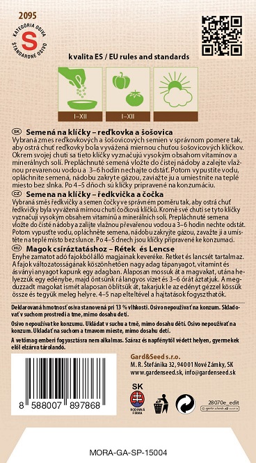 Okrem svojej chuti sa tieto klíčky vyznačujú vysokým obsahom vitamínov a minerálnych solí. Prepláchnuté semená vložte do čistej nádoby a zalejte vlažnou prevarenou vodou a 3–6 hodín nechajte odstáť. Potom vypustite vodu, opláchnite semená, nádobu zakryte gázou, zaviažte ju a umiestnite na teplé miesto bez slnka. Po 4–5 dňoch sú klíčky pripravené na konzumáciu.