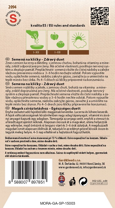 Má očistné vlastnosti, posilňuje nervový systém a zlepšuje pamäť. Prepláchnuté semená vložte do čistej nádoby a zalejte vlažnou prevarenou vodou a 3–6 hodín nechajte odstáť. Potom vypustite vodu, opláchnite semená, nádobu zakryte gázou, zaviažte ju a umiestnite na teplé miesto bez slnka. Po 4–5 dňoch sú klíčky pripravené na konzumáciu.