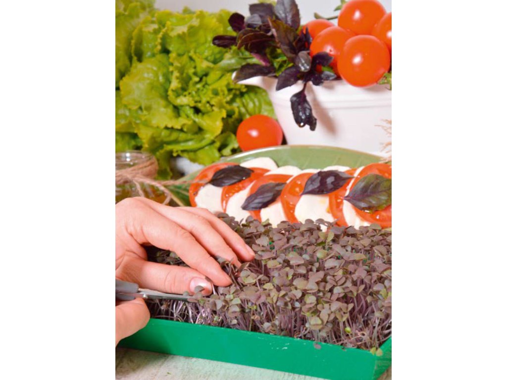 PESTOVANIE MIKROZELENINY: POZOR! Substrát by nemal byť počas celej kultivácie príliš vlhký. 1. Plochú nádobu naplňte zeminou, potom ju zarovnajte a zalejte. 2. Semená nasypte husto po celom povrchu. 3. Dvakrát denne pokropte vodou a pestujte 2-3 týždne. Rastliny zrežte, keď vytvoria prvé listy.