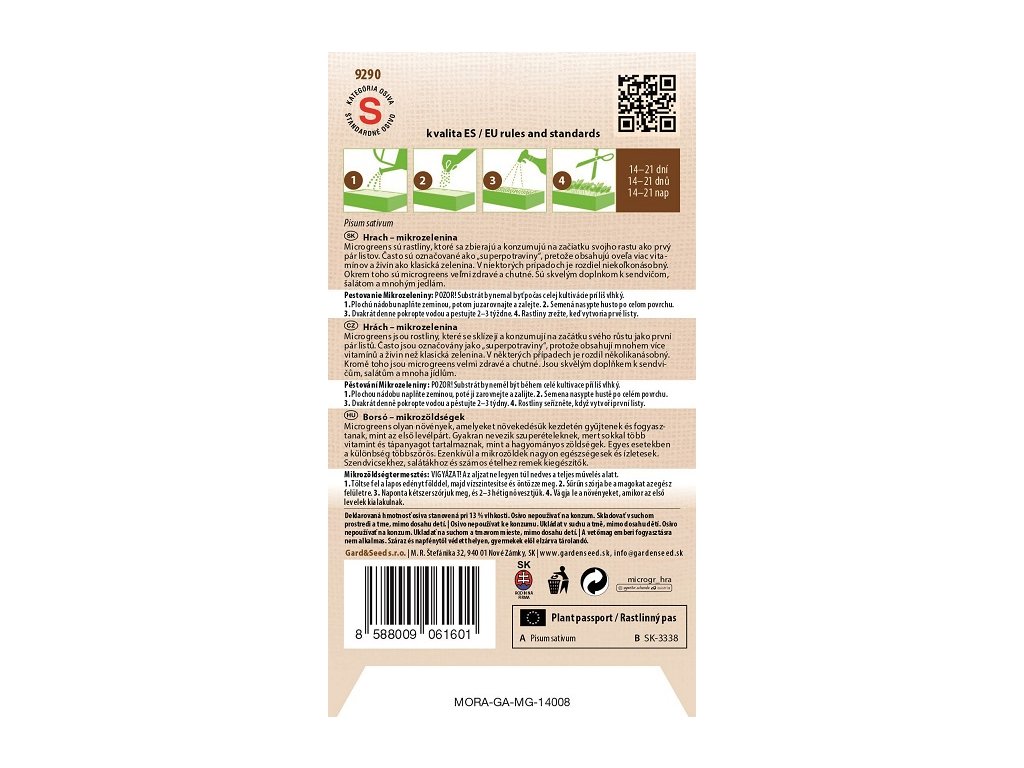 PESTOVANIE MIKROZELENINY: POZOR! Substrát by nemal byť počas celej kultivácie príliš vlhký. 1. Plochú nádobu naplňte zeminou, potom ju zarovnajte a zalejte. 2. Semená nasypte husto po celom povrchu. 3. Dvakrát denne pokropte vodou a pestujte 2-3 týždne. Rastliny zrežte, keď vytvoria prvé listy.