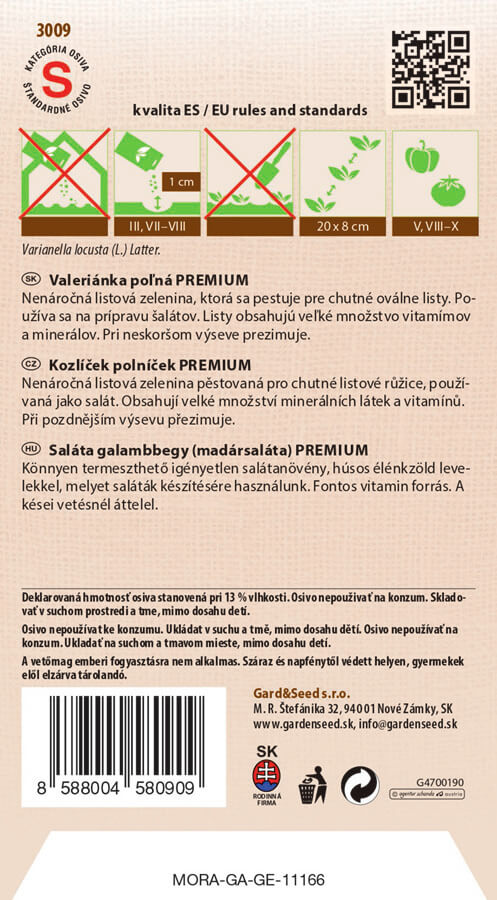 | Výsev na záhony: | III, VII - VIII |