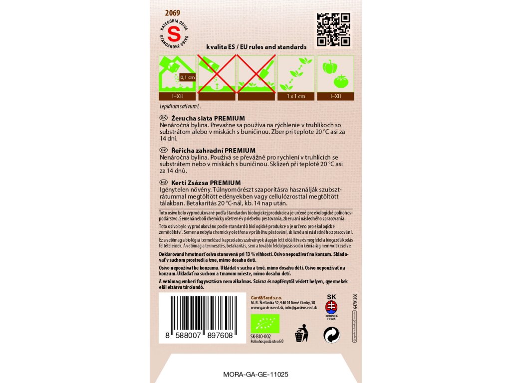 Toto osivo bolo vyprodukované podľa štandardov biologickej produkcie a je určené pre ekologické poľnohospodárstvo. Semená neboli chemicky ošetrené v priebehu pestovania, zberu ani následného spracovania.