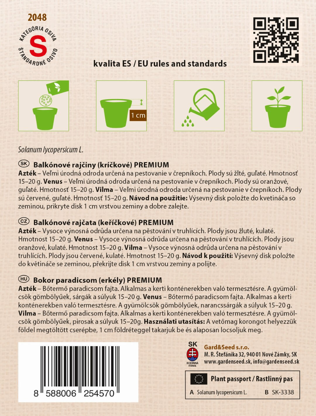 Zmes balkónových paradajok obsahuje odrody: Azték, Venus a Vilma.