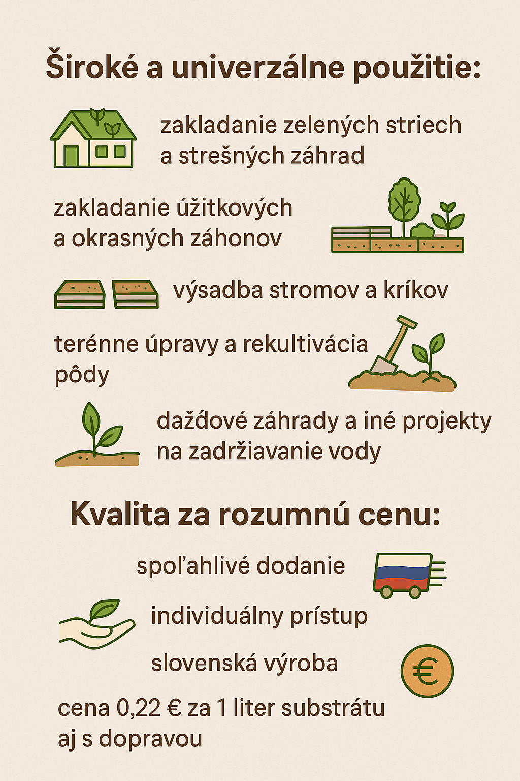 - cena 0,22€ za 1 liter substrátu aj s dopravou.