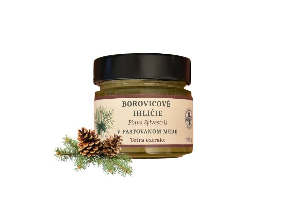 Unikátny pastovaný terapeutický med s tetra extraktom borovicového ihličia obsahuje široké spektrum účinných látok, ktoré posilnia organizmus, podporia dýchanie, imunitu aj krásu vlasov a pokožky. Pastovaný med je nosičom pre tetra extrakt borovicového ihličia, ktorý bol vyextrahovaný pri teplote ľudského tela, vďaka čomu sa zachováva maximálne množstvo zdraviu prospešných látok.